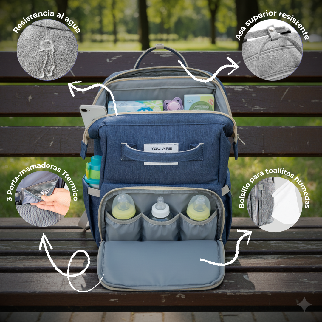 Además te permite transformar la pañalera en una estación de cambio, una cama para las siestas o un área segura para jugar, brindando comodidad donde quiera que vayas.
